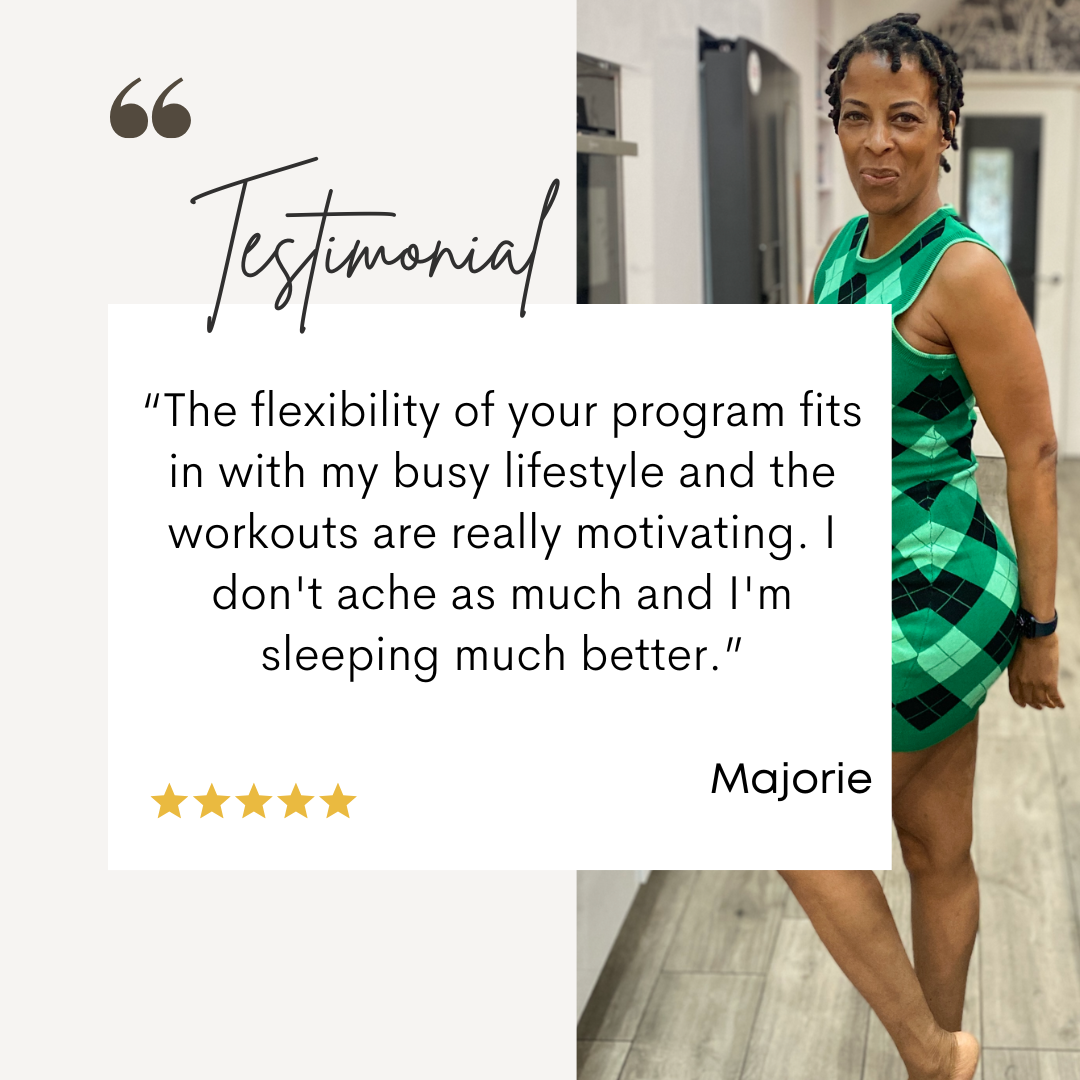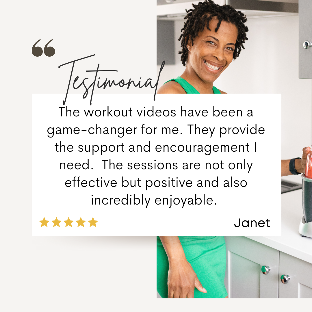 Each workout is filmed in real-time, so it’ll feel like we’re sweating together.  You’ll hear my coaching, feel my encouragement, and stay motivated from start to finish.  And yes, the music is fire, you’ll want to keep going just for the beats!